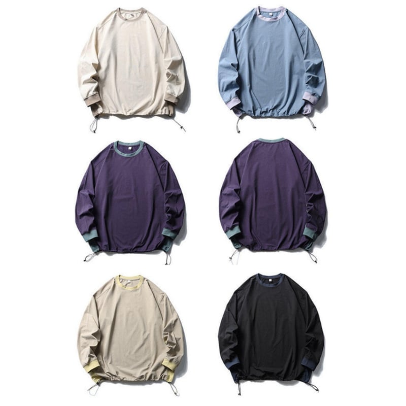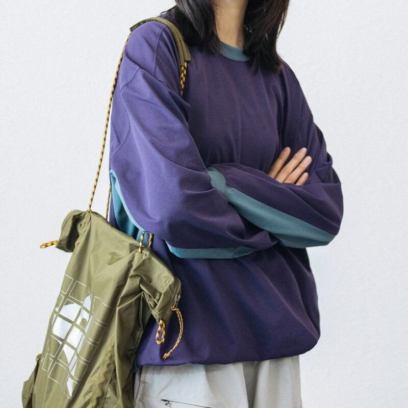 カラーブロックドロップショルダー長袖Tシャツ K18020
