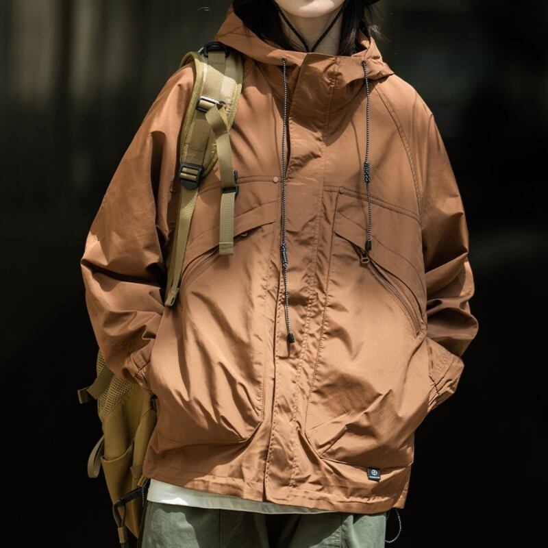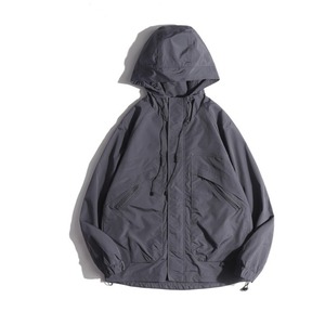 機能性とデザイン性を兼ね備えた、フード付きオーバーサイズジャケットです。