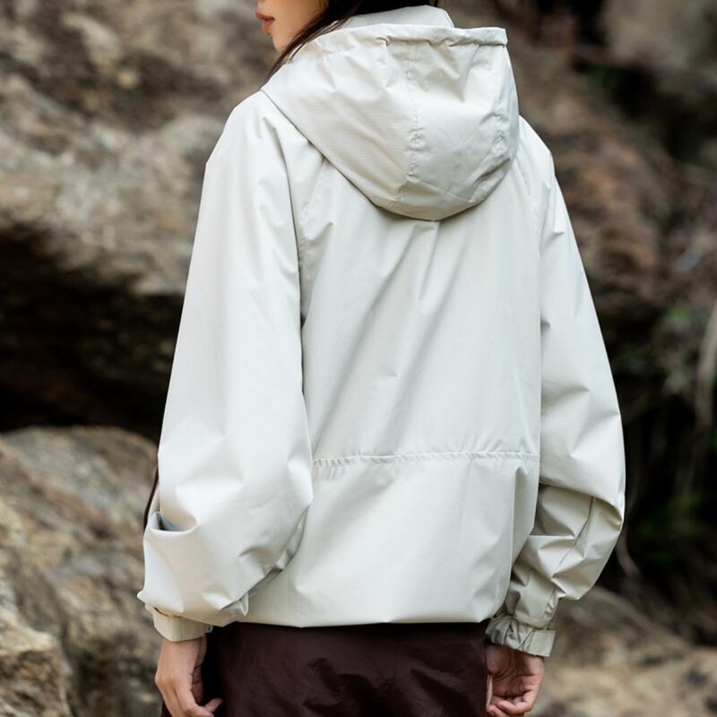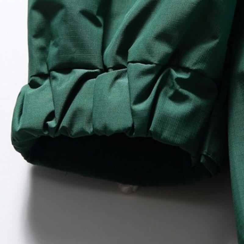 絞れる袖口や裾のドローコードでシルエットを調整でき、風の侵入を防ぎます。