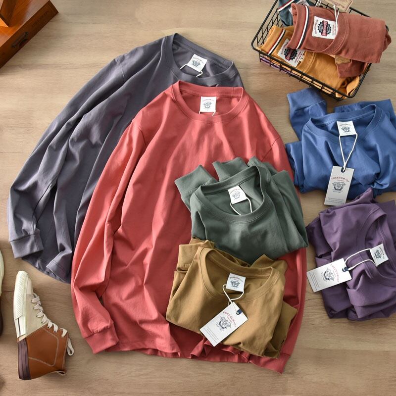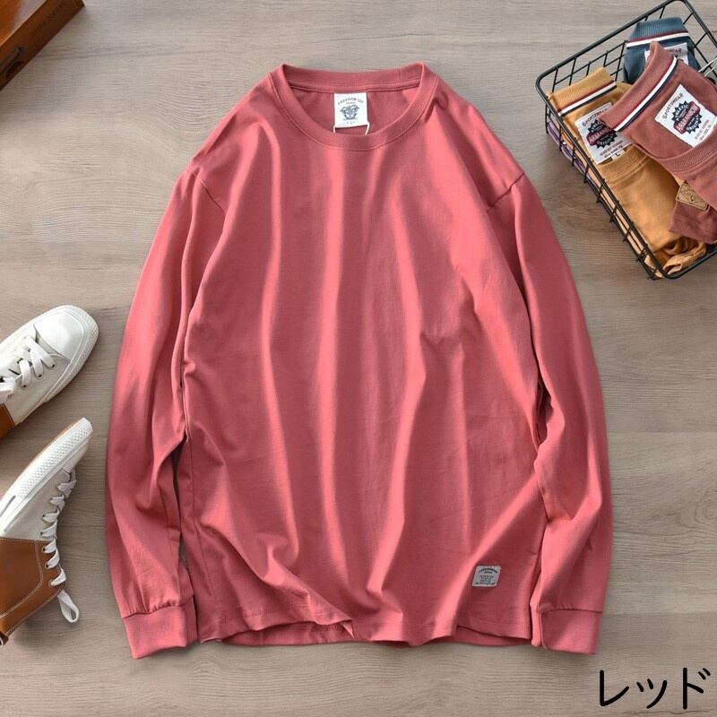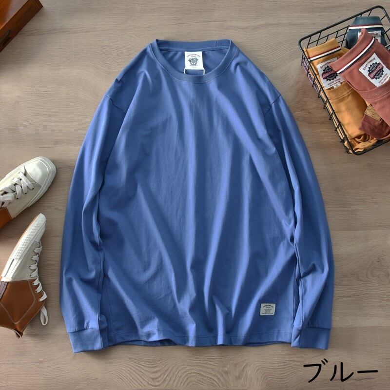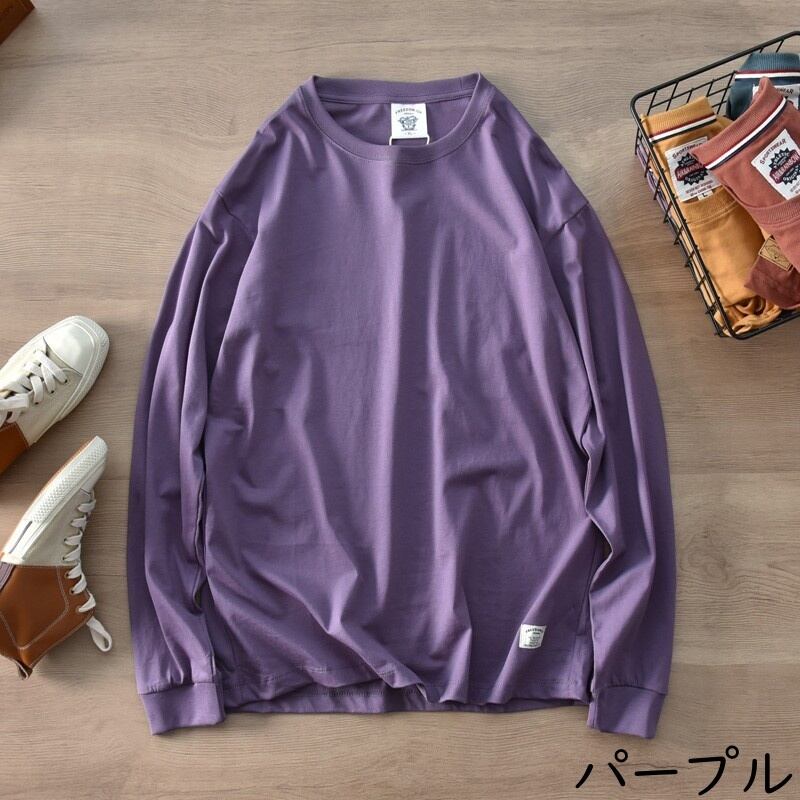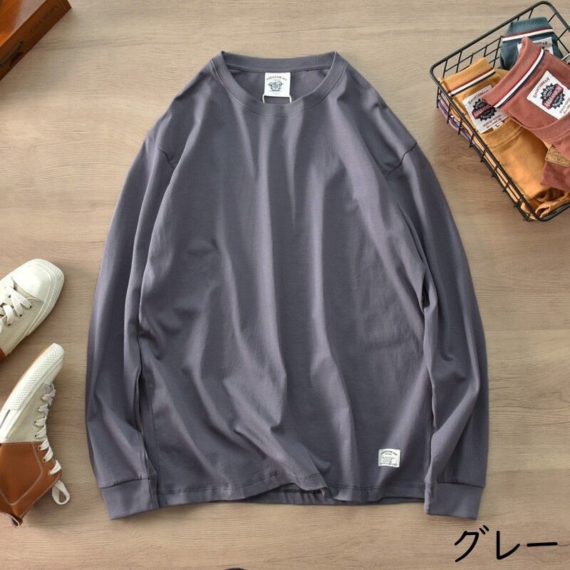 どんなスタイルにも合わせやすい、クルーネックの長袖Tシャツです。