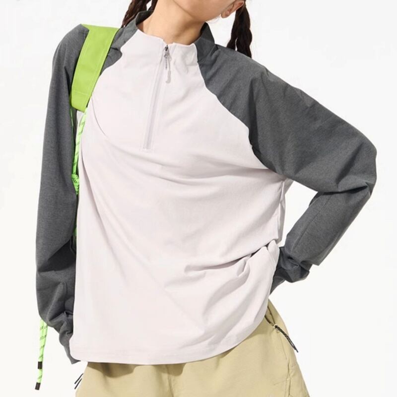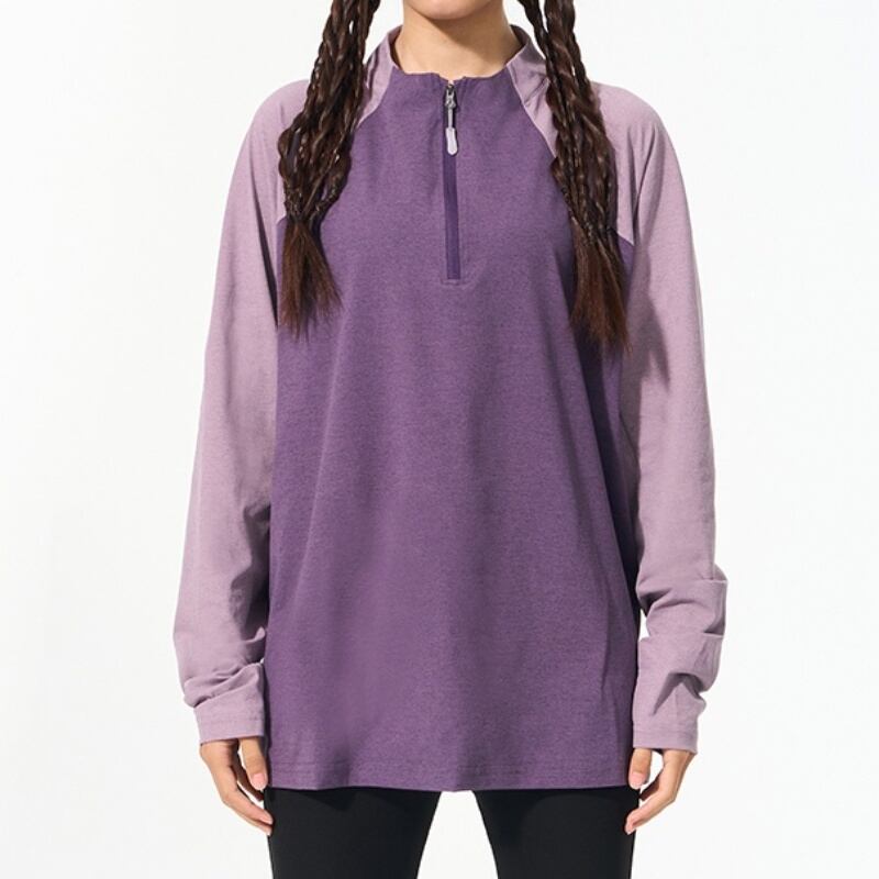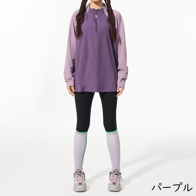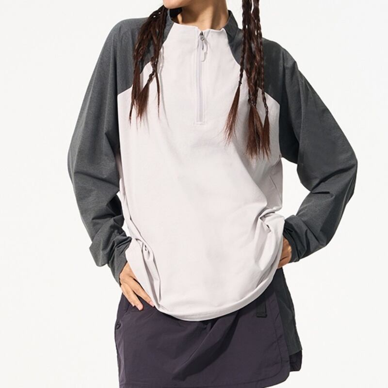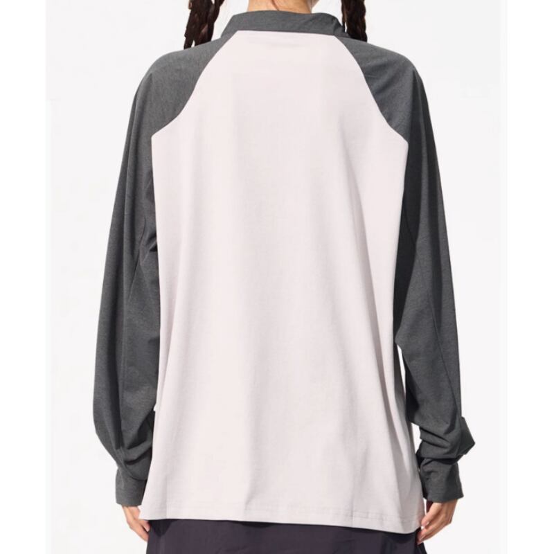 動きやすさを追求したラグランスリーブと、ハーフジップアップの機能的なデザインで、アウトドアやスポーツにも最適な一枚です。
