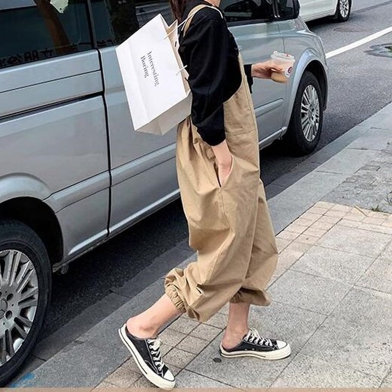 調整可能な肩紐とクロップド丈の緩いシルエットが特徴で、女性らしいスタイルを演出します。