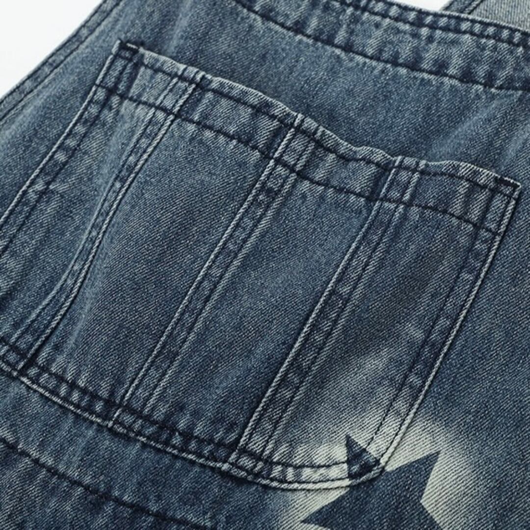 星のプリントがポイントのカジュアルなオーバーオールです。