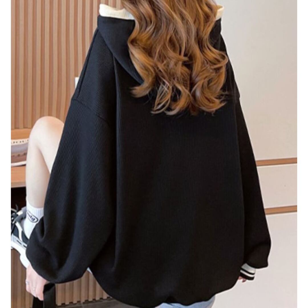 大きめフードとほどよいルーズシルエットが、可愛くもカジュアルに決まる一枚です。