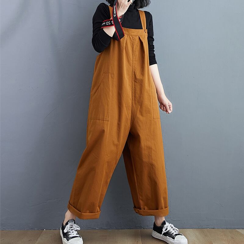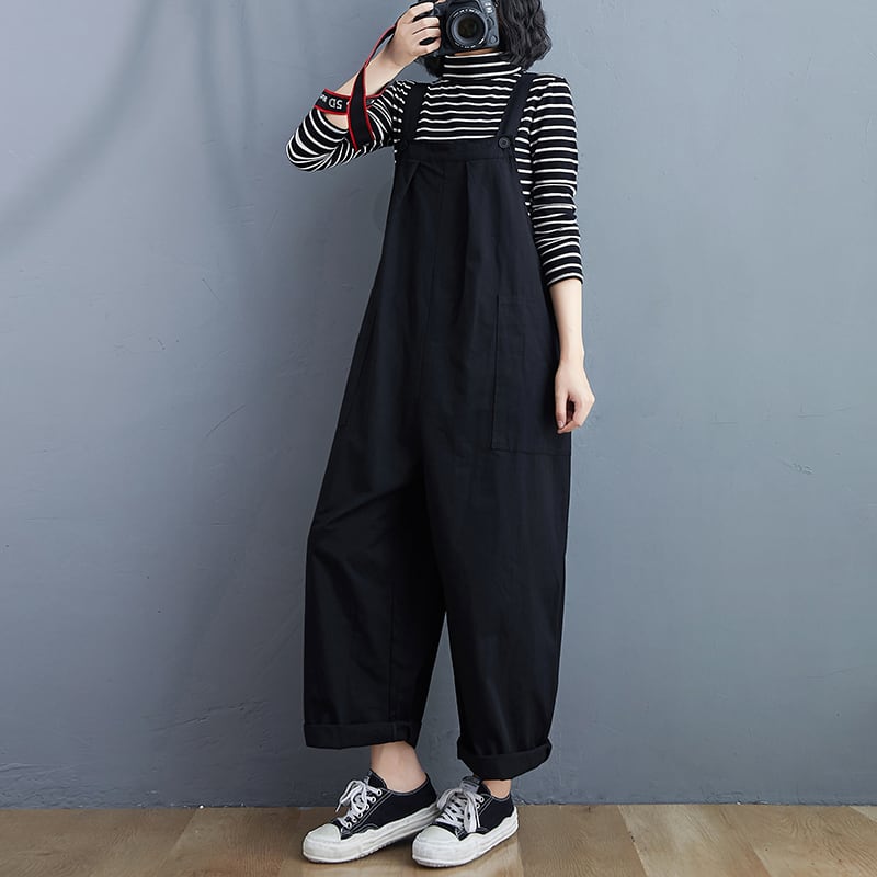 フロントのタックデザインとワイドレッグがゆったりシルエットのオーバーオールです。