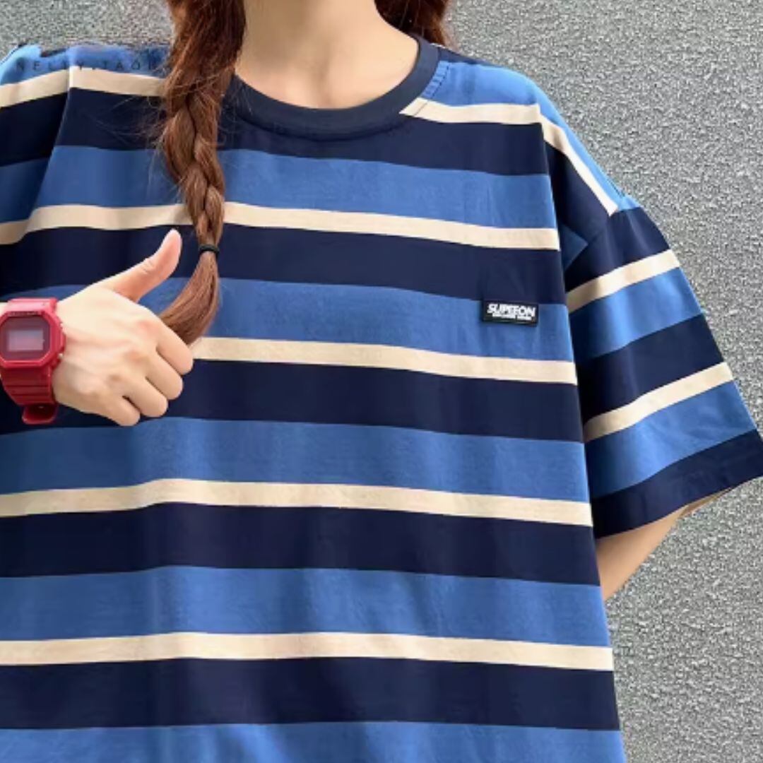 コーディネート のアクセントになる クルーネック ボーダーTシャツ。