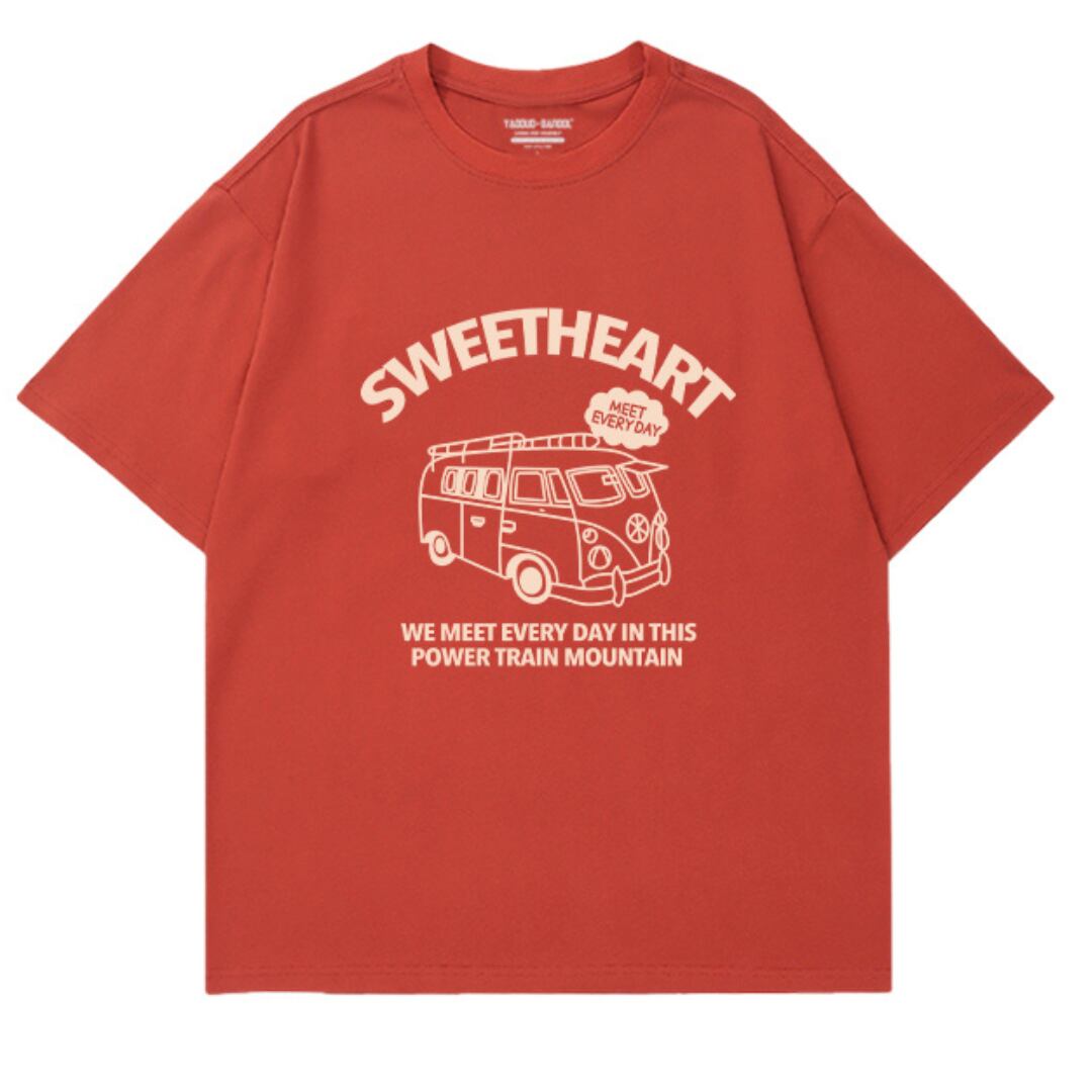 ルーズなシルエットとポップなプリントが特徴で、アメカジの雰囲気を演出します。