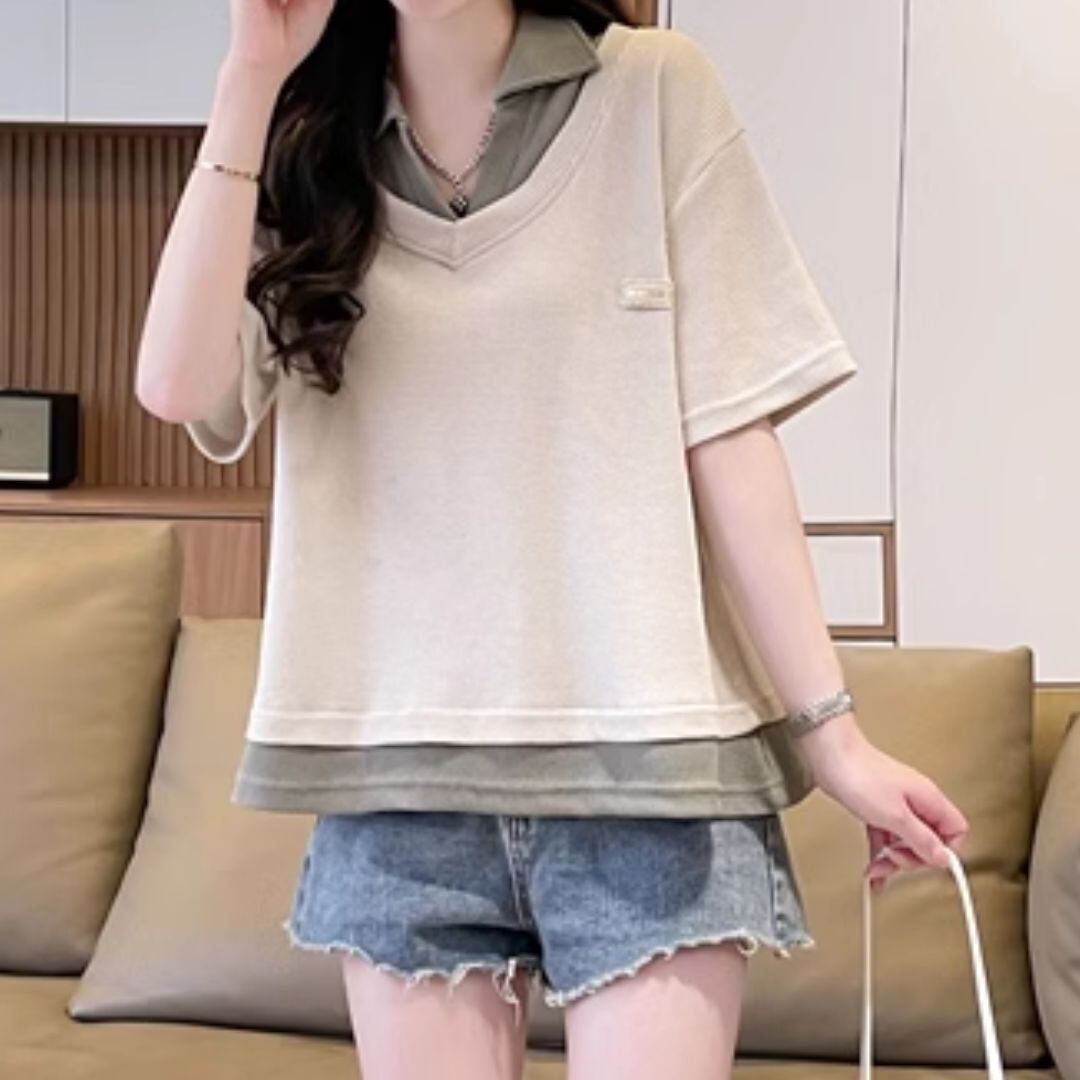 コントラストカラーゆったりTシャツ K77093