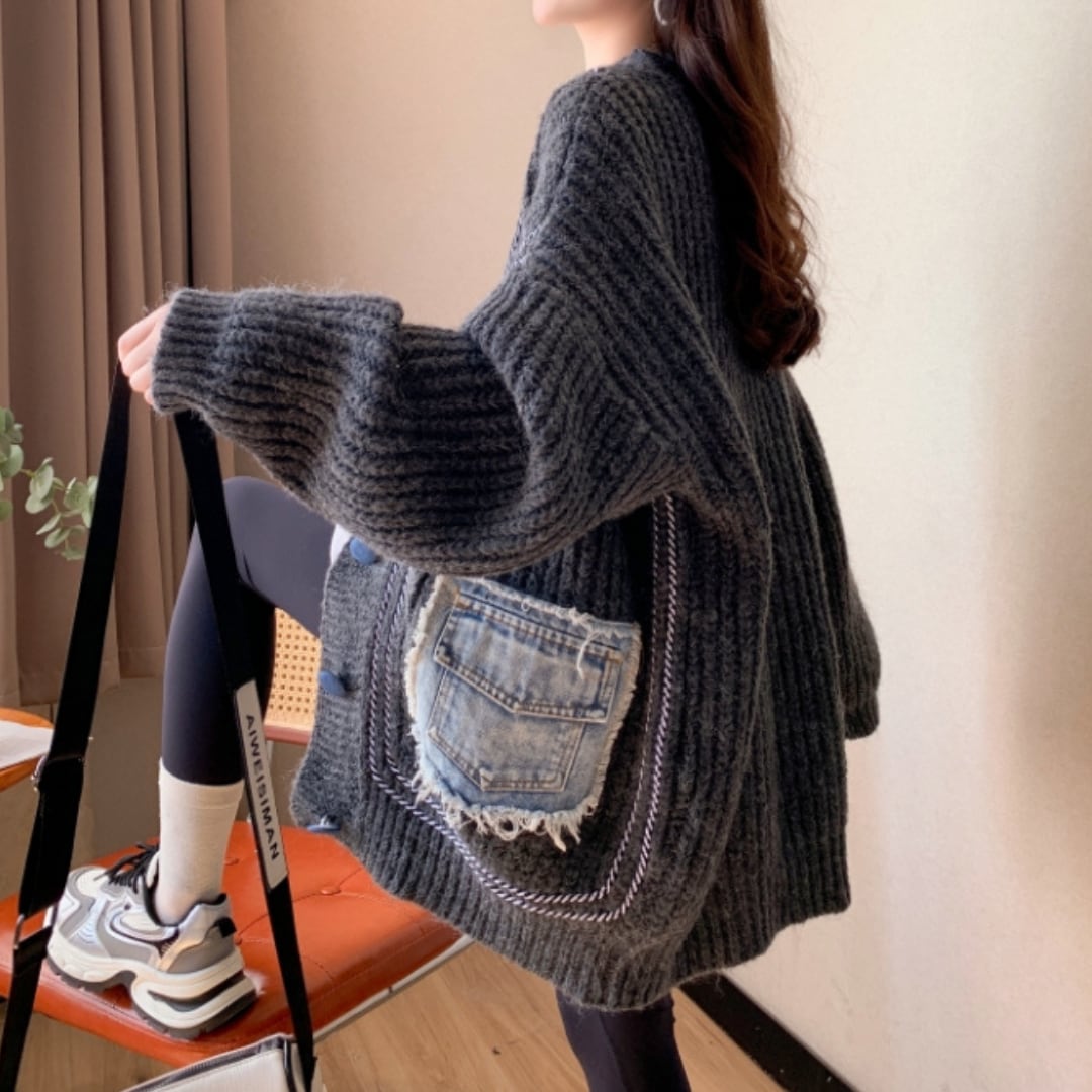 デニムにぴったりニットカーディガン 3XLまで対応 K77177