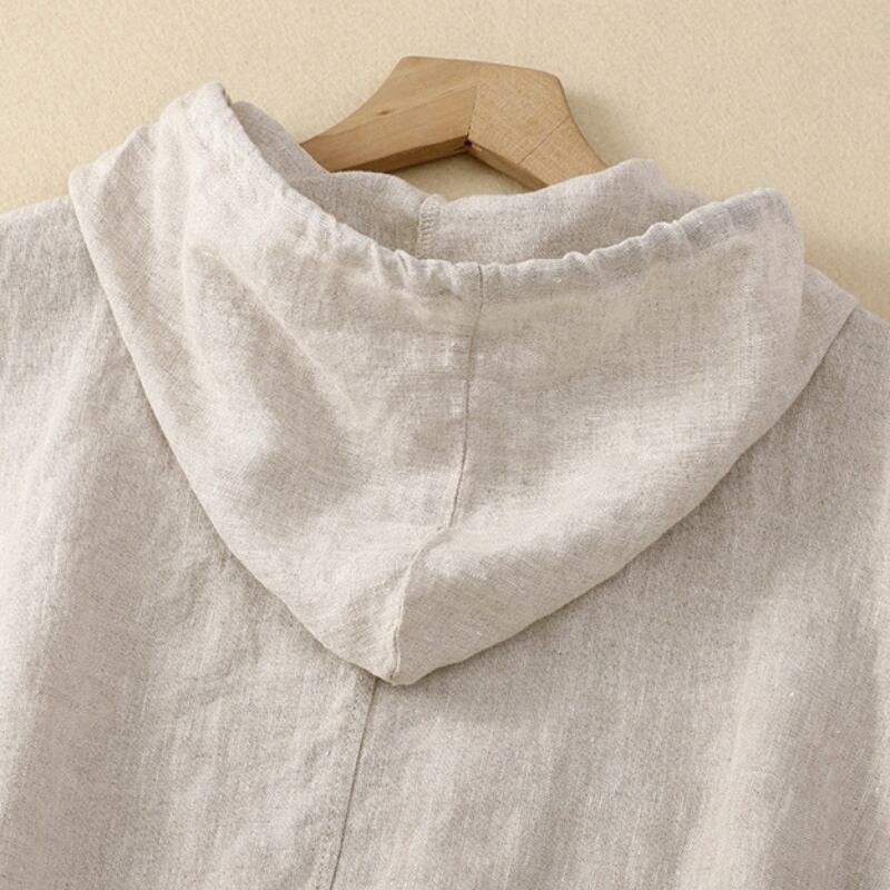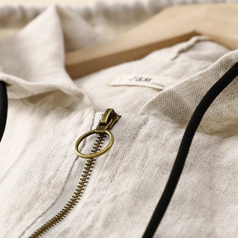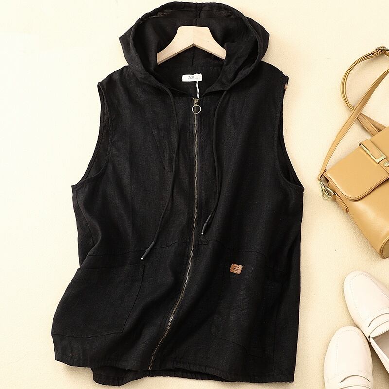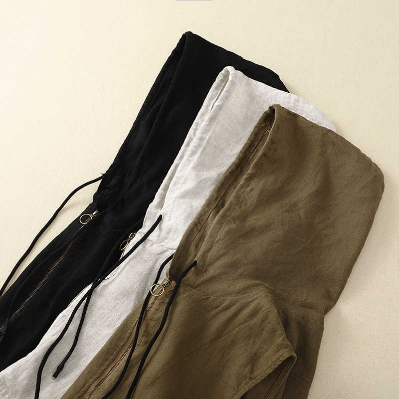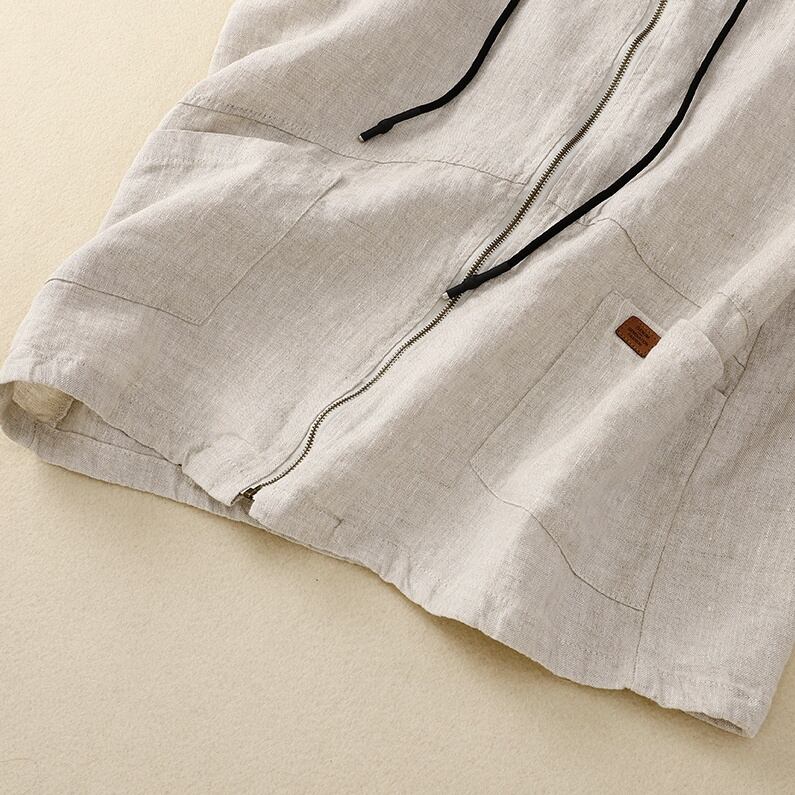 軽やかなリネン素材のジップアップフーデッドベストです。