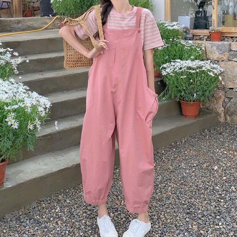 ゆったりとしたシルエットが魅力の、ワイドレッグカラーオーバーオールです。