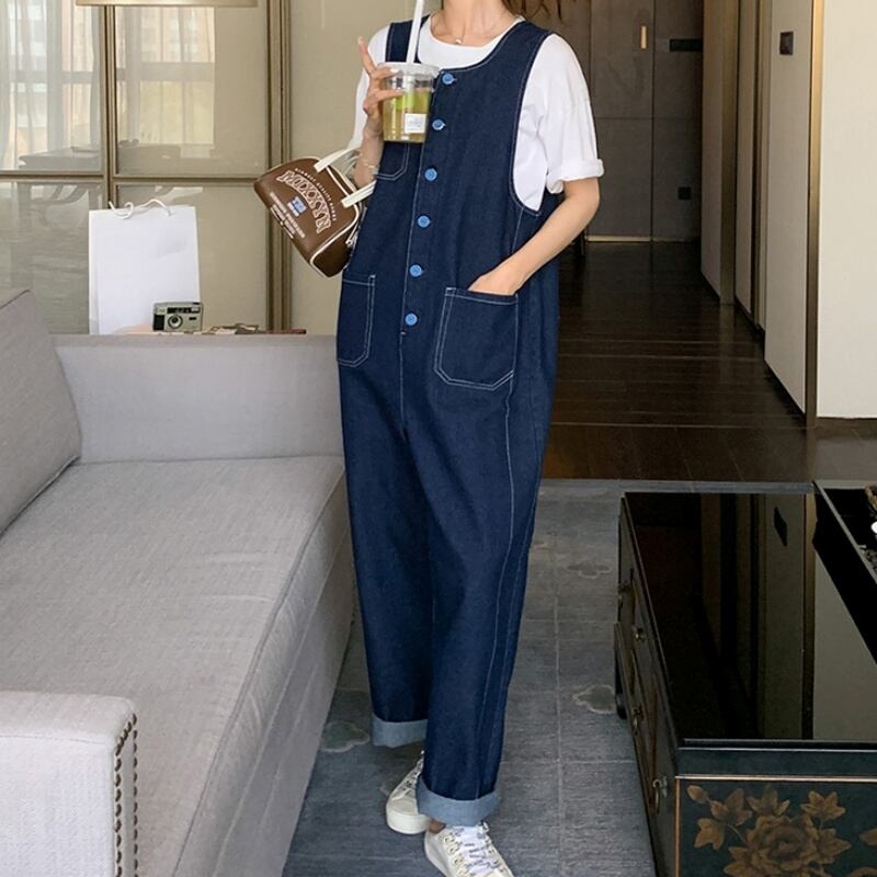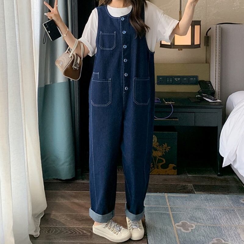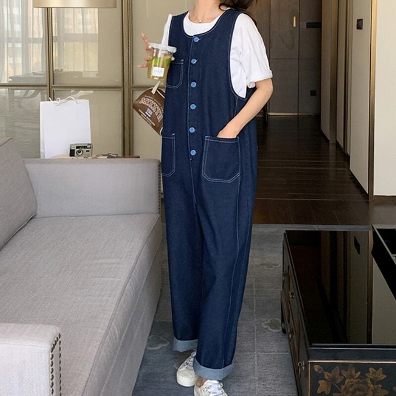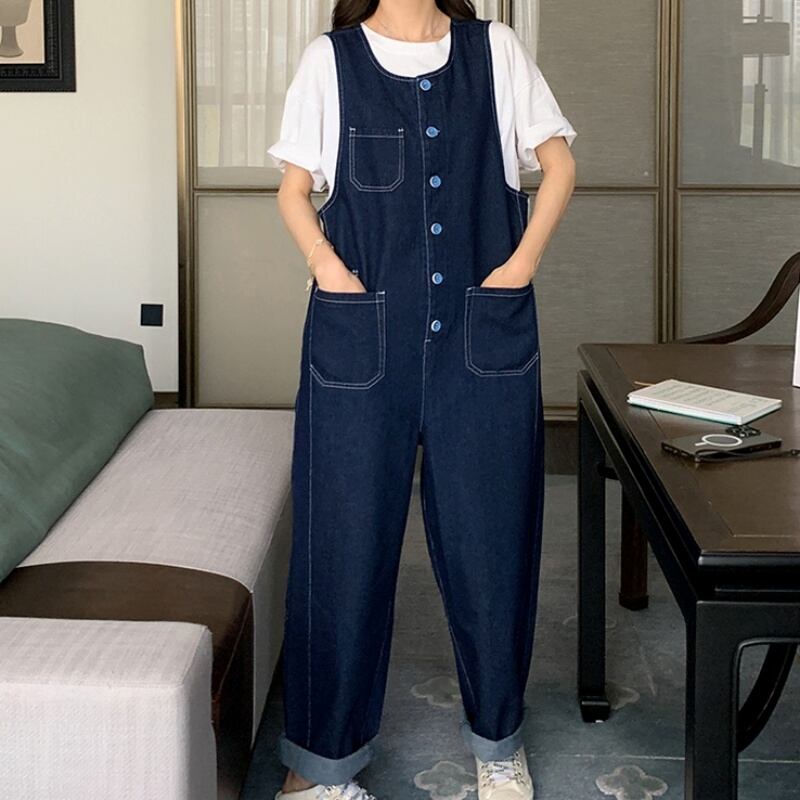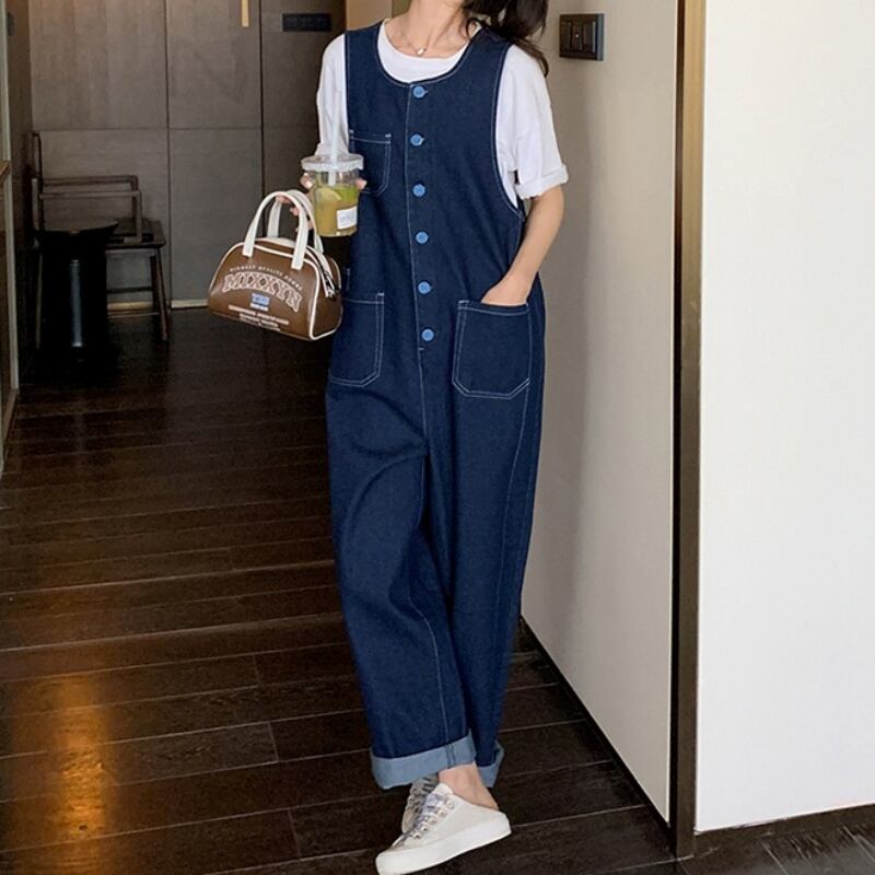 着るだけで旬なスタイルが完成する、フロントボタンオーバーオールです。